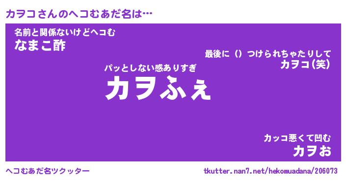 | ファンタジー風あだ名 | 『カヲフェル』『エターナルカヲコー』 |