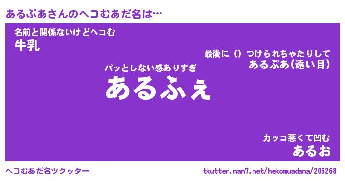 | 意味不明あだ名 | 『ペロリンあるぷあ』『永久保存あるぷあ』 |