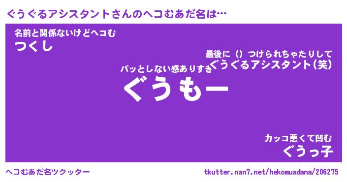 ポケモン風あだ名 | 『グウチュウ』『グウグダネ』 |