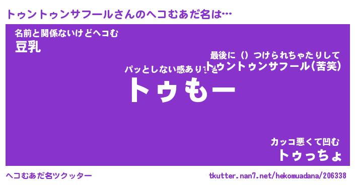 | 男性向けラノベタイトル風あだ名 | 『トゥントゥンサフールの憂鬱』 |