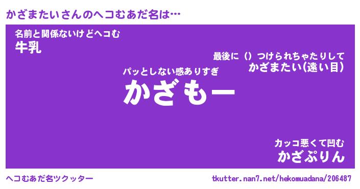 | 男性向けラノベタイトル風あだ名 | 『かざまたいの憂鬱』 |