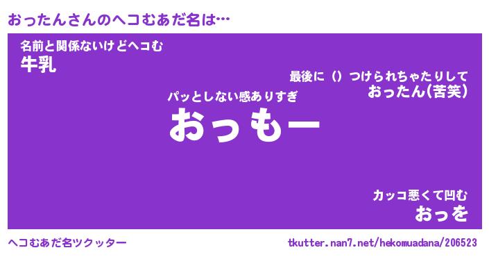 | 男性向けラノベタイトル風あだ名 | 『おったんの憂鬱』 |