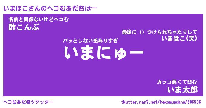 | 意味不明あだ名 | 『ペロリンいまほこ』『永久保存いまほこ』 |