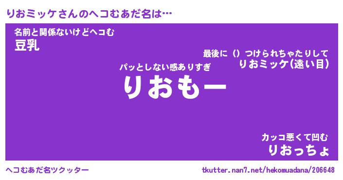 | ファンタジー風あだ名 | 『リオフェル』『エターナルリオミッケー』 |