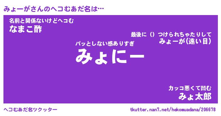 | 意味不明あだ名 | 『ペロリンみょーが』『永久保存みょーが』 |