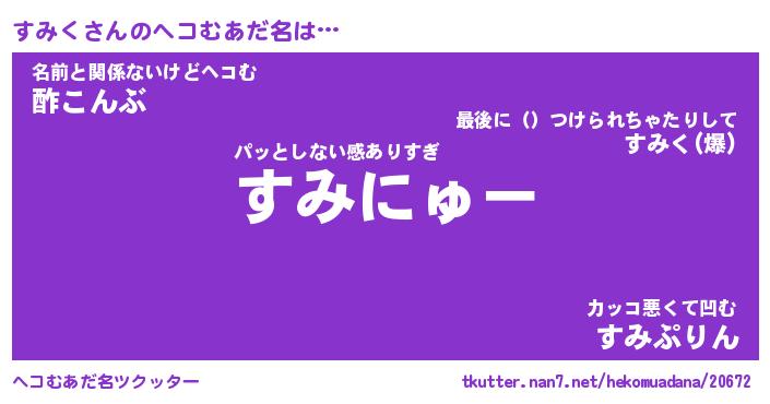 | 胡散臭い通販商品みたいなあだ名 | 『モテモテ間違いなし水晶球…その名も「すみく」』 |