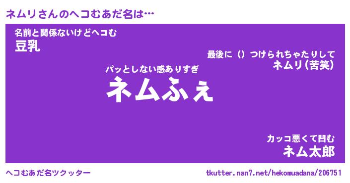 | ファンタジー風あだ名 | 『ネムフェル』『エターナルネムリー』 |
