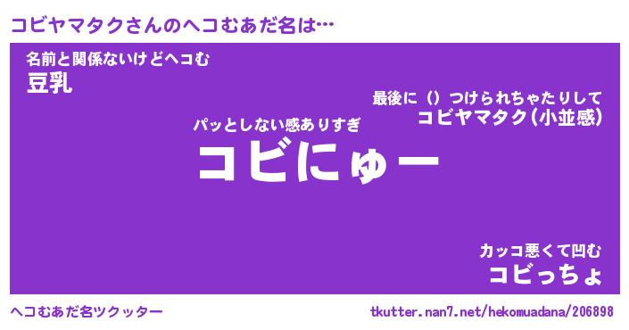 | ヒーロー風カッコイイあだ名 | 『スーパーコビヤマタク』『天弓騎士コビ』 |