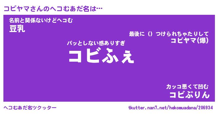ファンタジー風あだ名 | 『コビフェル』『エターナルコビヤマー』 |