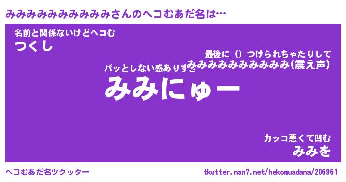 男性向けラノベタイトル風あだ名 | 『みみみみみみみみみみの憂鬱』 |