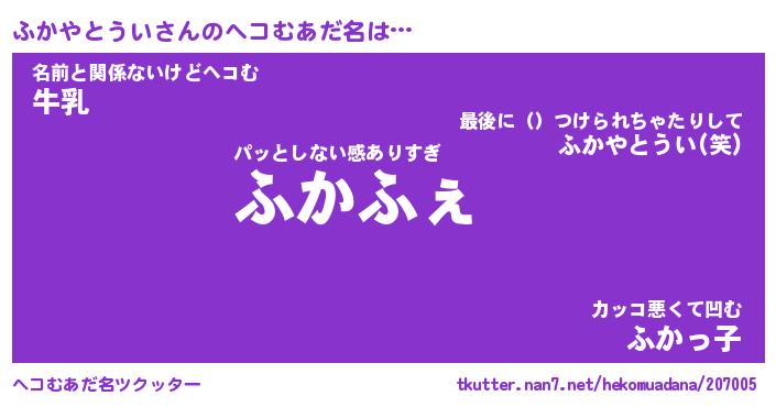 | ポケモン風あだ名 | 『フカチュウ』『フカヤダネ』 |
