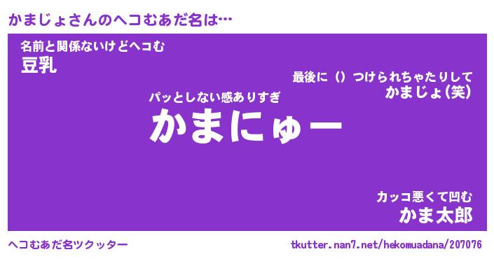 | 自動車の名前っぽいあだ名 | 『カマティマ』『カスラー』『デミカ』 |