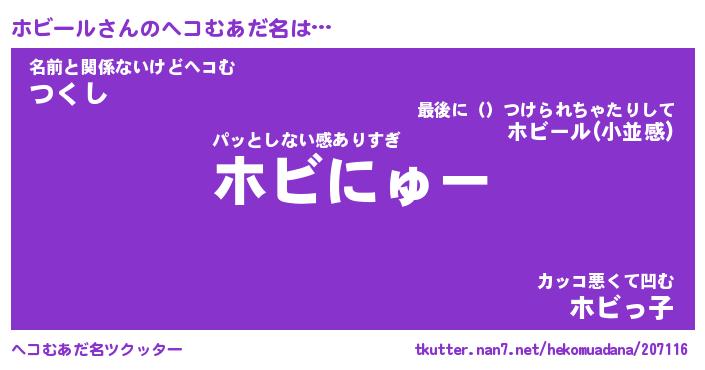 ポケモン風あだ名 | 『ホビチュウ』『ホビーダネ』 |