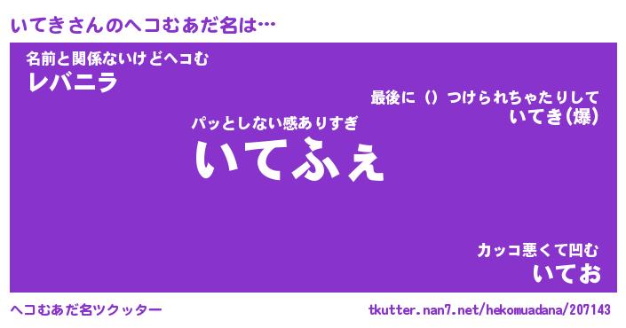 意味不明あだ名 | 『ペロリンいてき』『いてきフォーエバー』 |