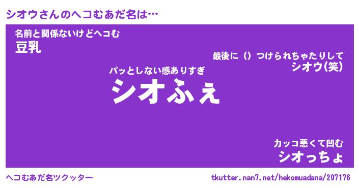 ファンタジー風あだ名 | 『シオフェル』『エターナルシオウー』 |
