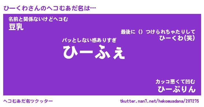 男性向けラノベタイトル風あだ名 | 『ひーくわの憂鬱』 |