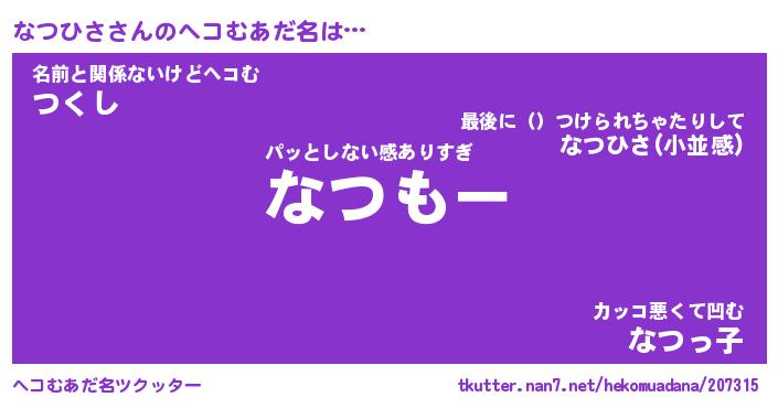 | 意味不明あだ名 | 『ペロリンなつひさ』『永久保存なつひさ』 |