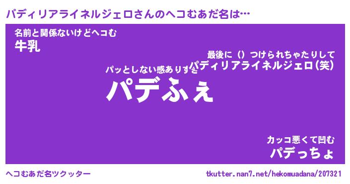 | ヒーロー風カッコイイあだ名 | 『スーパーパディリアライネルジェロ』 |