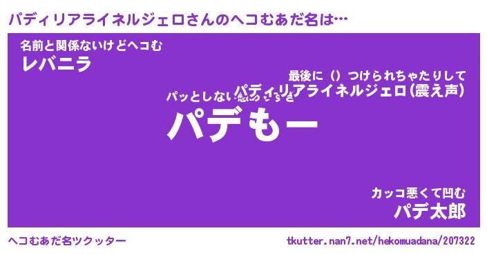 | 恥ずかしいあだ名 | 『プリティーパディリアライネルジェロ』 |