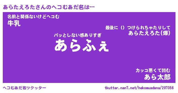 | ヒーロー風カッコイイあだ名 | 『スーパーアラタエロタ』『天弓騎士アラ』 |