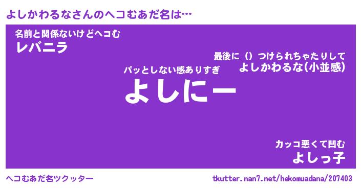 | 欧米人風あだ名 | 『マイケルよしかわるな』 |