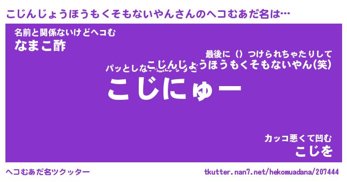 | 2回繰り返すあだ名 | 『こじこじ』『ここじじ』『ぬめぬめ』 |