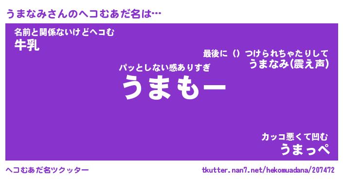 | ポケモン風あだ名 | 『ウマチュウ』『ウマナダネ』 |
