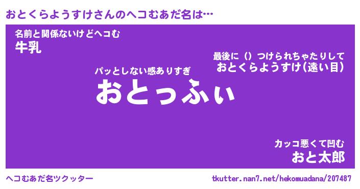 | 男性向けラノベタイトル風あだ名 | 『おとくらようすけの憂鬱』 |