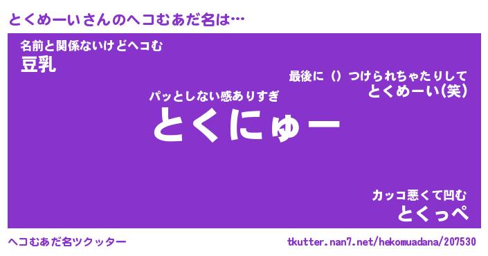 | ポケモン風あだ名 | 『トクチュウ』『トクメダネ』 |