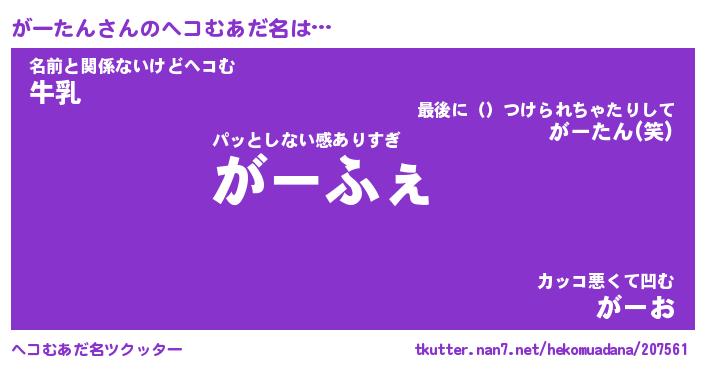 | 2回繰り返すあだ名 | 『がーがー』『ががーー』『いそいそ』 |