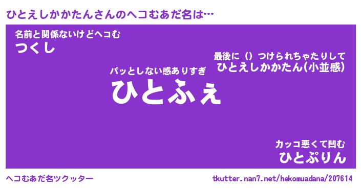 | 自動車の名前っぽいあだ名 | 『ヒトティマ』『ヒクア』『ヒント』 |