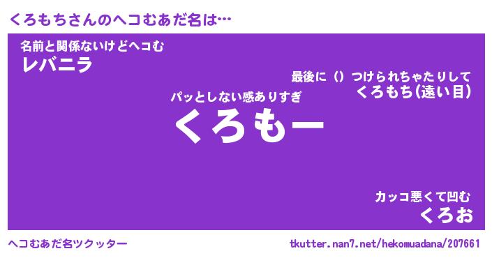 ファンタジー風あだ名 | 『クロフェル』『エターナルクロモチー』 |