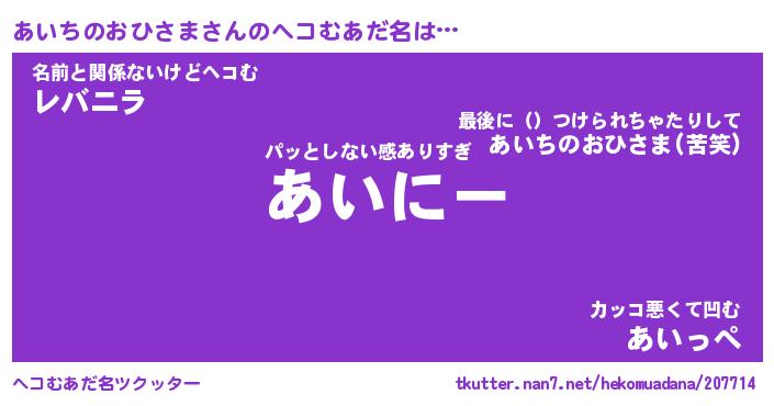 | 欧米人風あだ名 | 『マイケルあいちのおひさま』 |