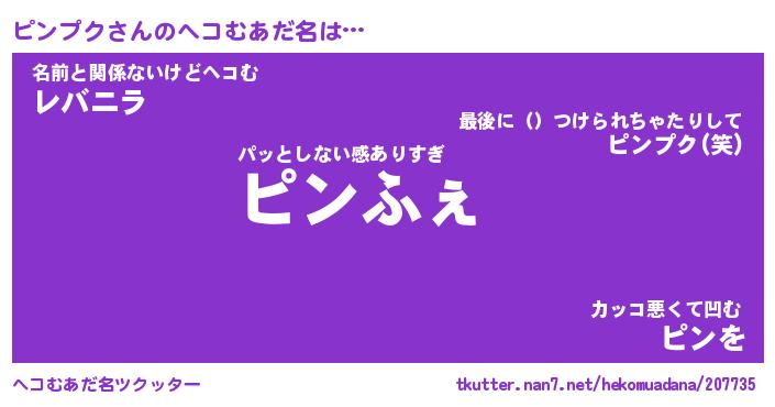 | ファンタジー風あだ名 | 『ピンフェル』『エターナルピンプクー』 |