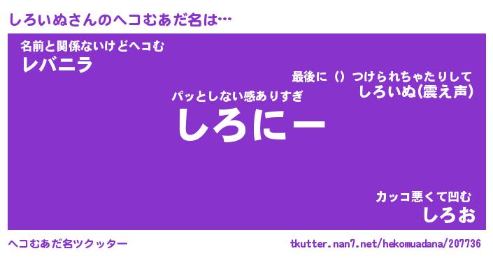 | 意味不明あだ名 | 『ペロリンしろいぬ』『永久保存しろいぬ』 |