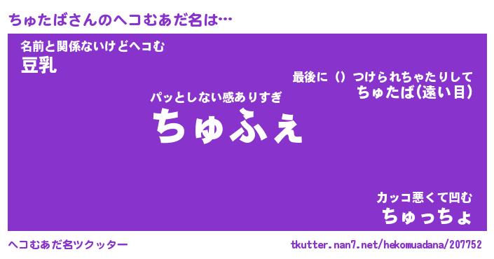 | 意味不明あだ名 | 『ペロリンちゅたば』『永久保存ちゅたば』 |
