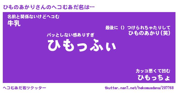 | 自動車の名前っぽいあだ名 | 『ヒモティマ』『ヒクア』『ヒント』 |