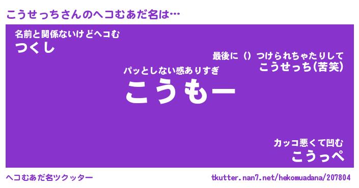 | 男性向けラノベタイトル風あだ名 | 『こうせっちの憂鬱』 |