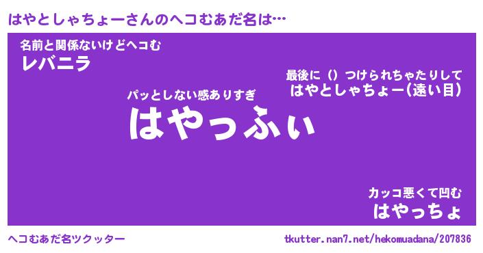| ポケモン風あだ名 | 『ハヤチュウ』『ハヤトダネ』 |