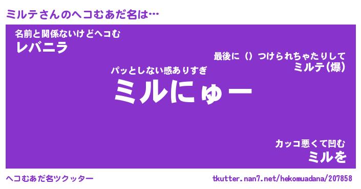 | ファンタジー風あだ名 | 『ミルフェル』『エターナルミルテー』 |