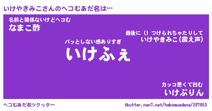 | 意味不明あだ名 | 『ペロリンいけやきみこ』 |