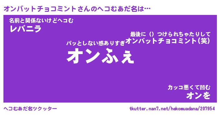 | 欧米人風あだ名 | 『マイケルオンバットチョコミント』 |