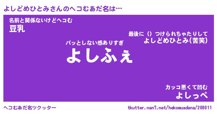 | 恥ずかしいあだ名 | 『プリティーよしどめひとみ』『よしちん』 |