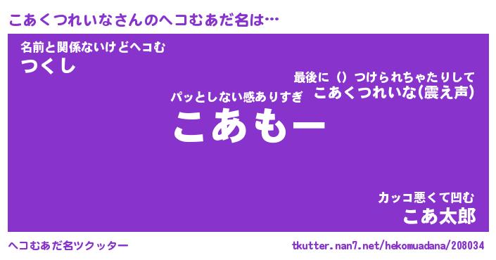 | 恥ずかしいあだ名 | 『プリティーこあくつれいな』『こあちん』 |