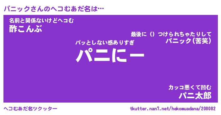 | 意味不明あだ名 | 『ペロリンパニック』『永久保存パニック』 |