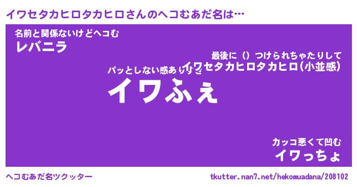 | 胡散臭い通販商品みたいなあだ名 | 『必ず成功する水晶球…その名も「イワセタカヒロタカヒロ」』 |