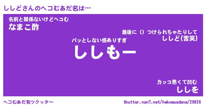 | 意味不明あだ名 | 『ペロリンししど』『ししどフォーエバー』 |