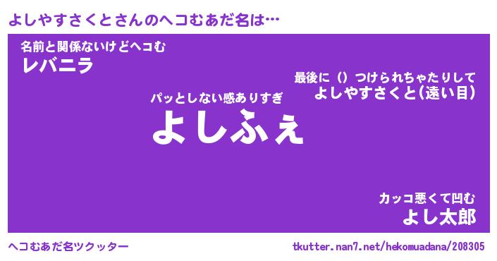 | ポケモン風あだ名 | 『ヨシチュウ』『ヨシヤダネ』 |