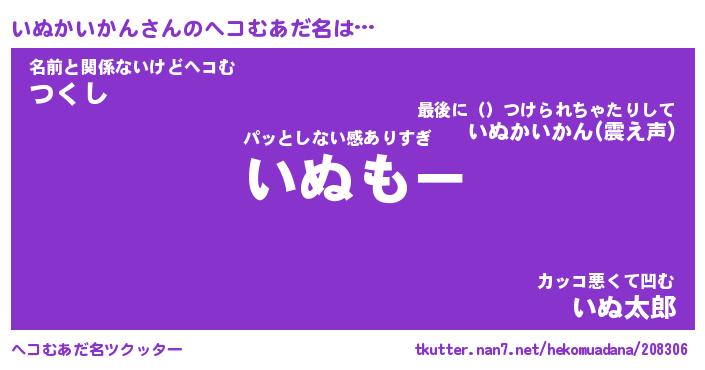 | ヒーロー風カッコイイあだ名 | 『スーパーイヌカイカン』『幻影騎士イヌ』 |