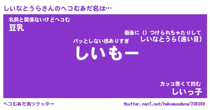 | 恥ずかしいあだ名 | 『プリティーしいなとうら』『しいっちょ』 |